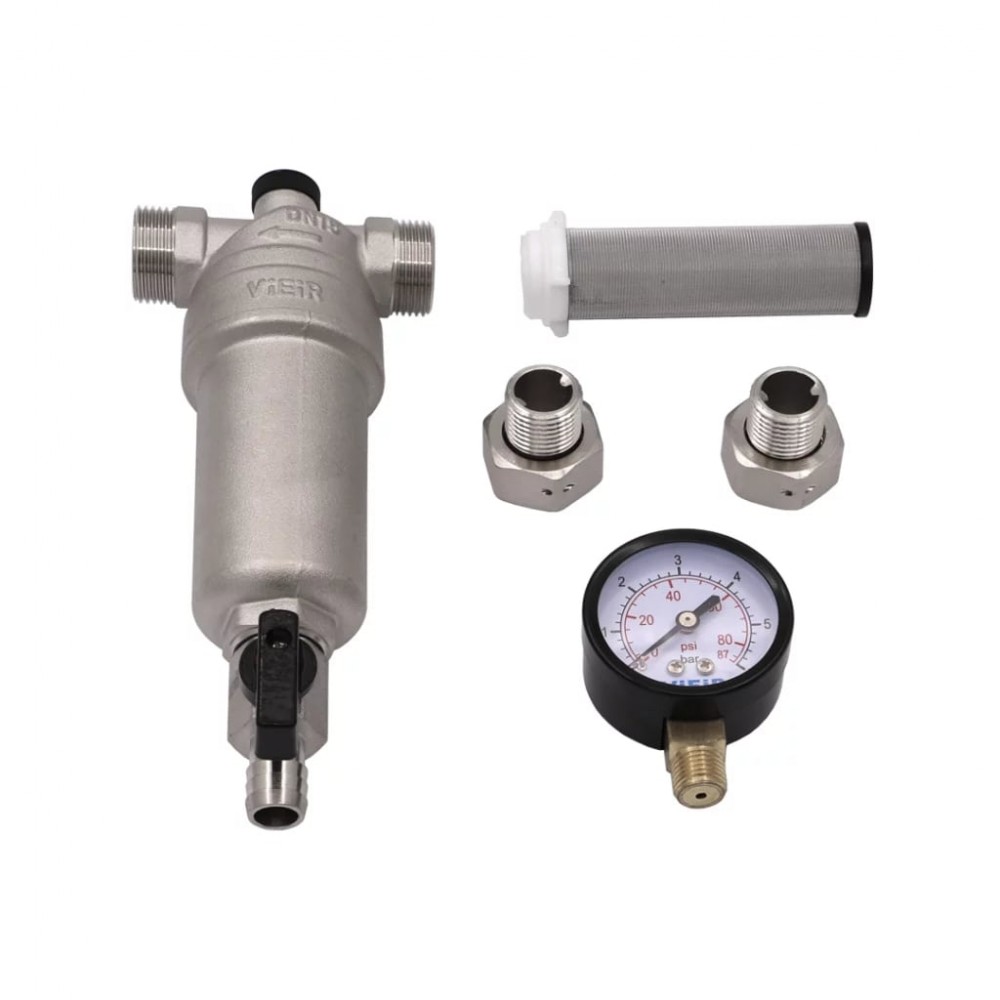 Фильтр самоочищающийся с манометром 1" для горячей воды VIEIR
