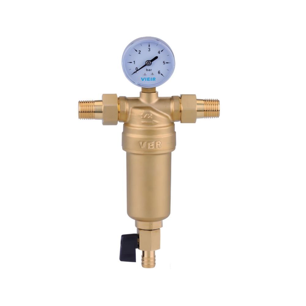 Фильтр самоочищающийся с манометром 3/4" для горячей воды VIEIR