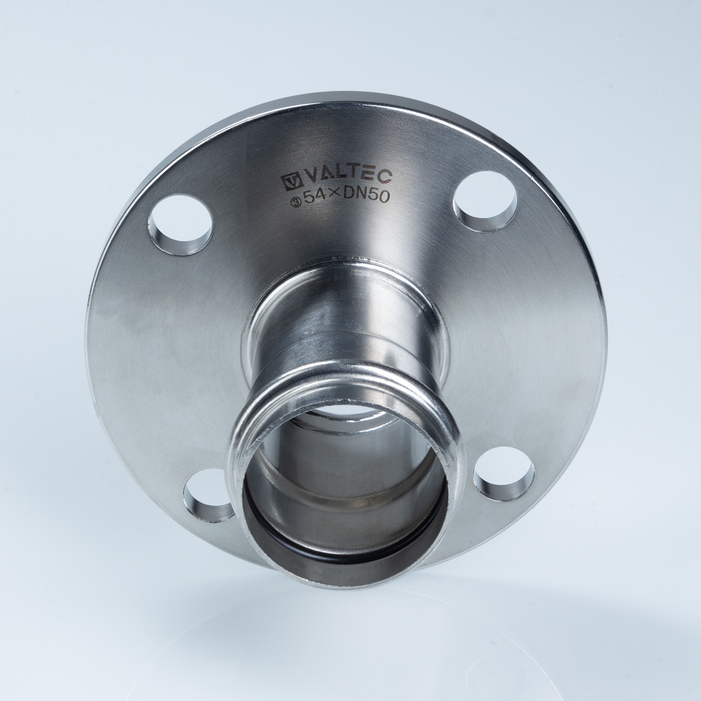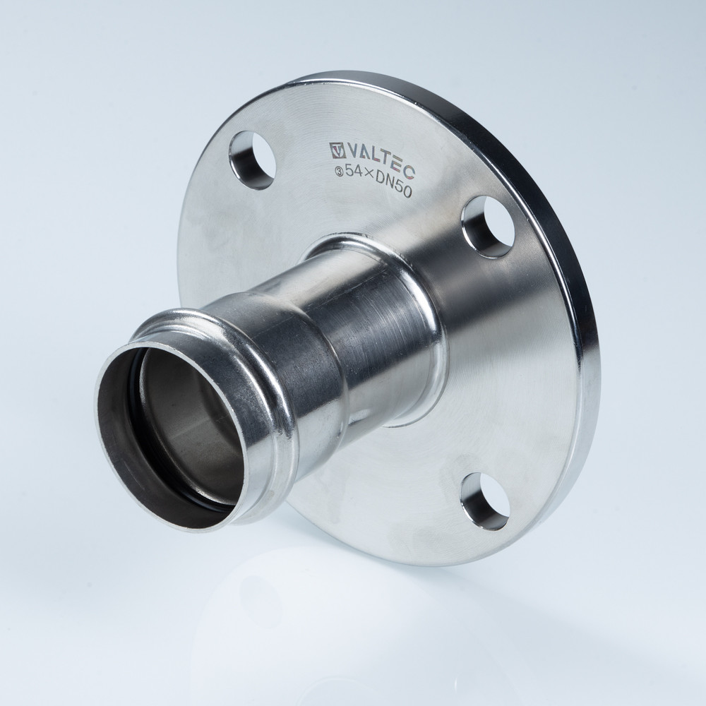 VALTEC соединитель с переходом на фланец VTi.980.I.042040 — пресс-фитинг из нержавеющей стали для соединения тонкостенной стальной трубы 42 мм с фланцевым элементом DN40.