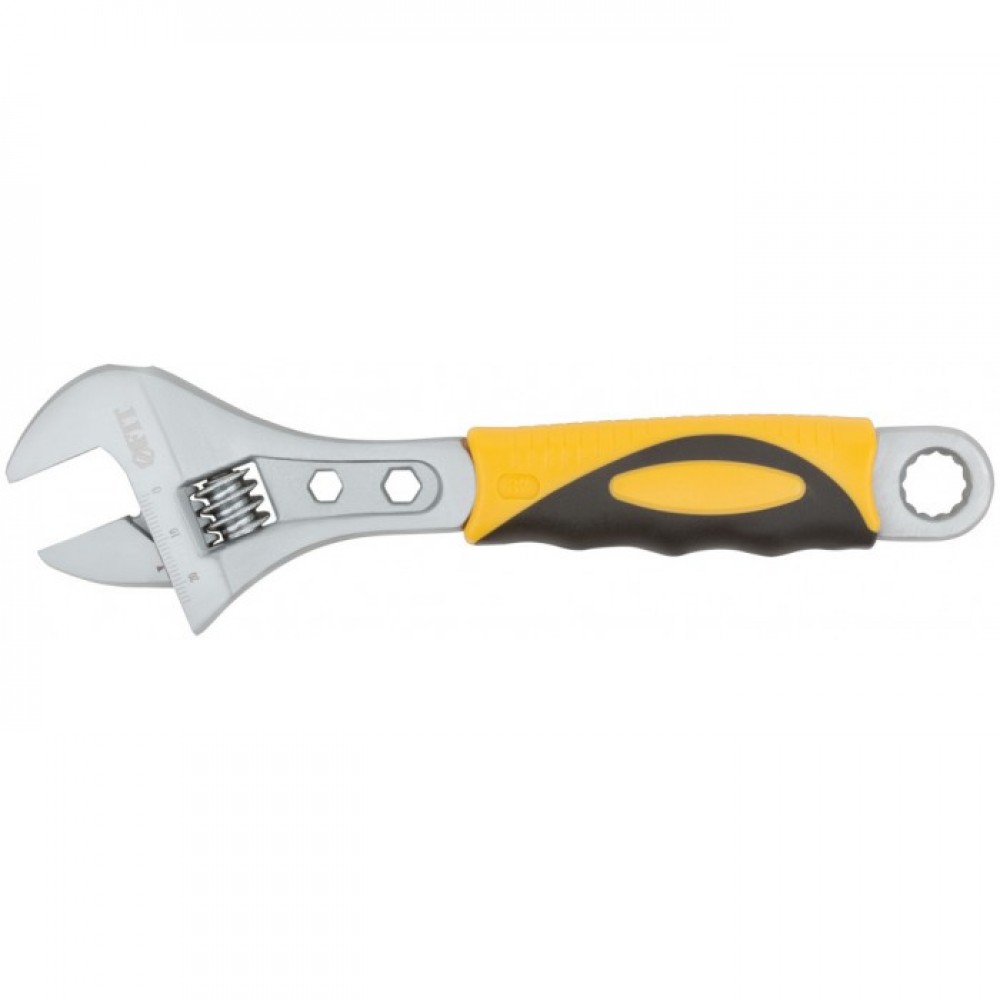 Размерная шкала и увеличенный рабочий диапазон губок обеспечивают удобство использования, а встроенные в ручку накидные ключи делают инструмент более универсальным. Материал — штампованная инструментальная сталь с хромированным покрытием, рукоятка — пластиковая с прорезиненным покрытием. Упаковка — пластиковый подвес.Преимущества разводного ключа Fit Классик 200 мм 70152: