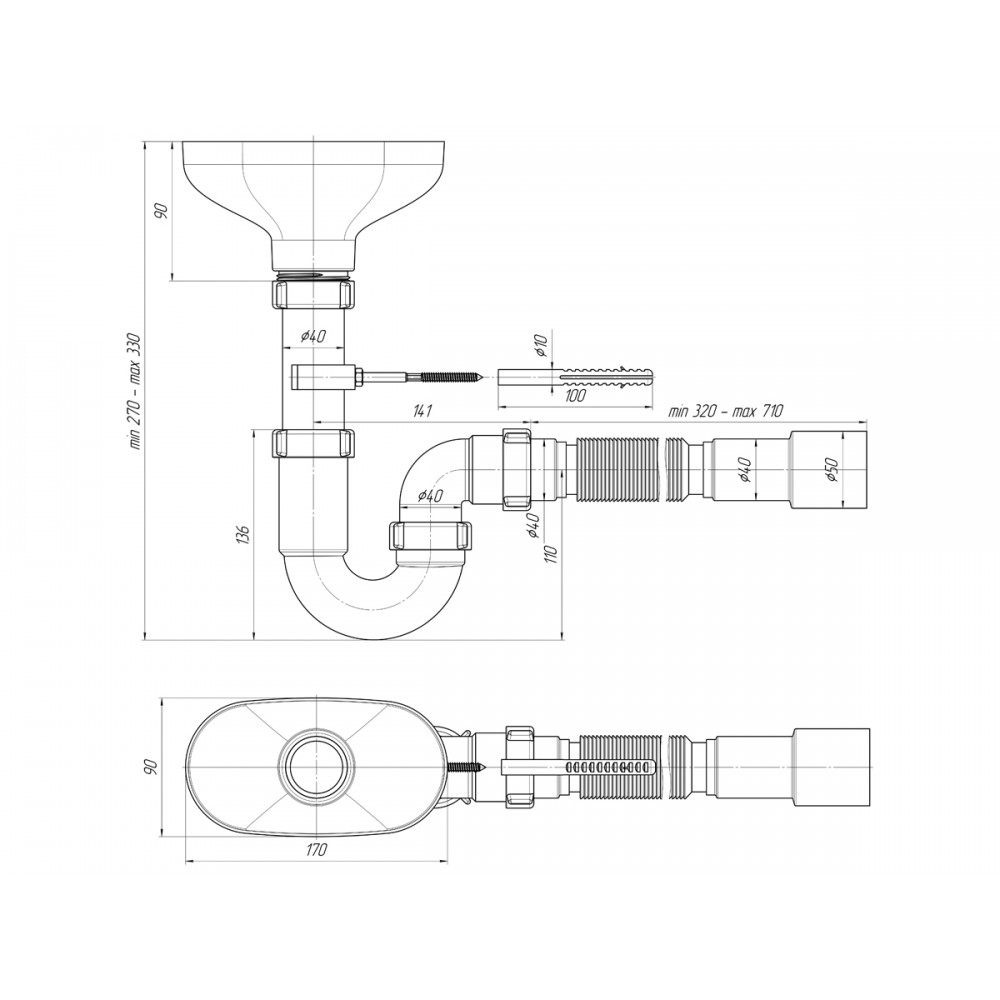 - ✓ Разрыв струи для защиты от обратного тока воды и запахов.