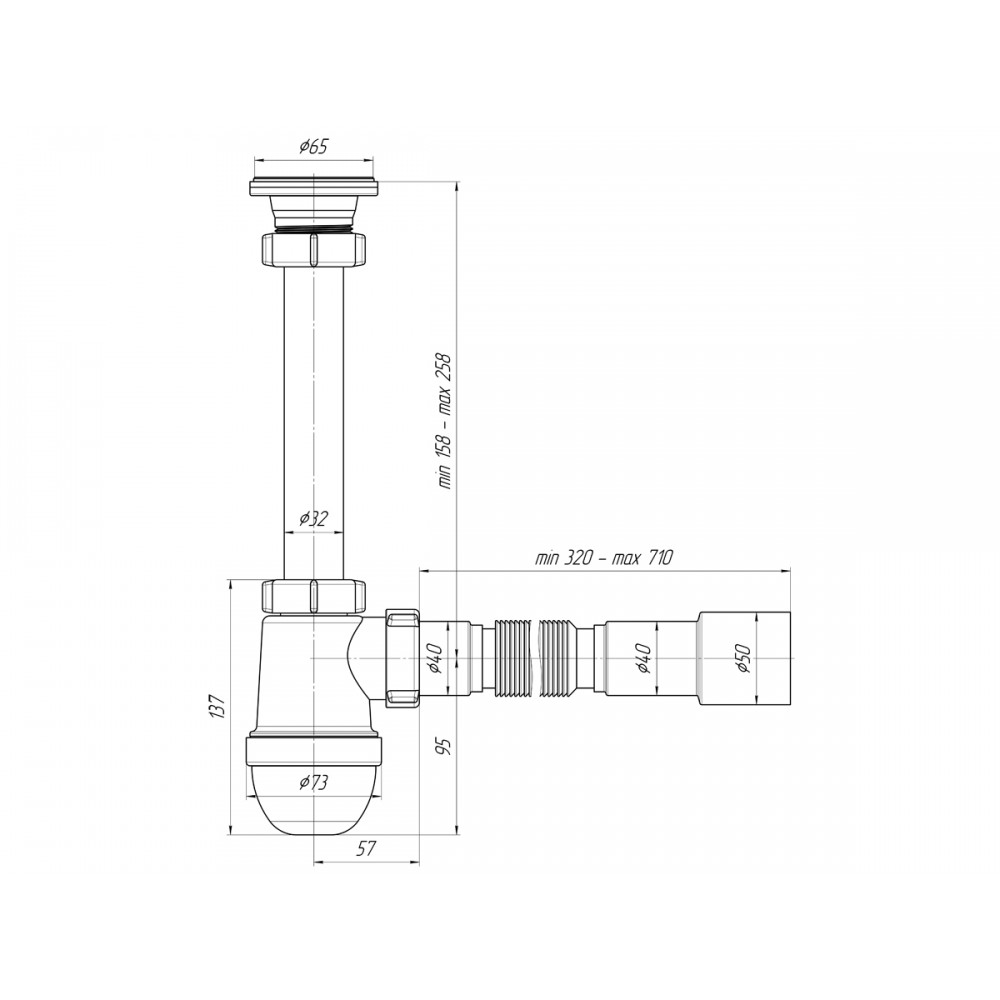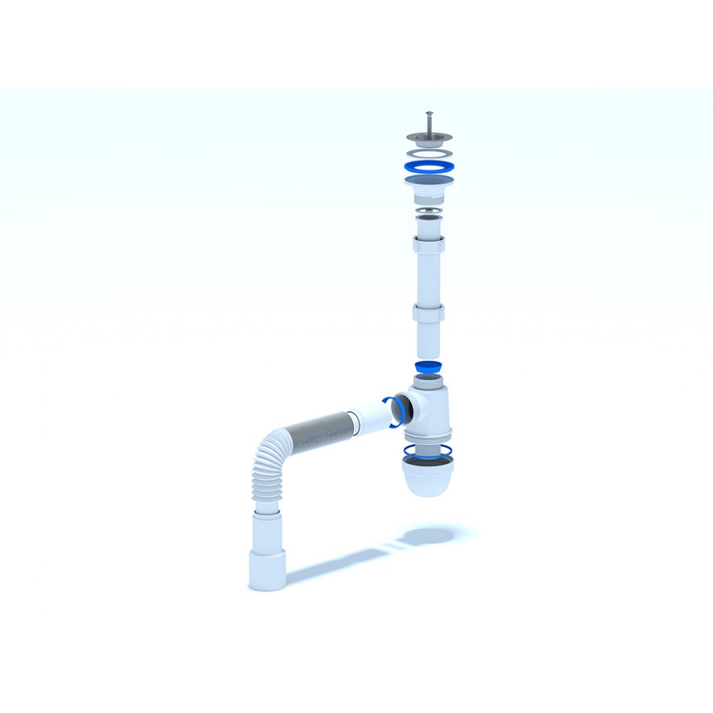 - ✓ Гибкая труба 40×40/50 мм облегчает установку сифона даже в труднодоступных местах и позволяет адаптировать конструкцию под особенности монтажа.