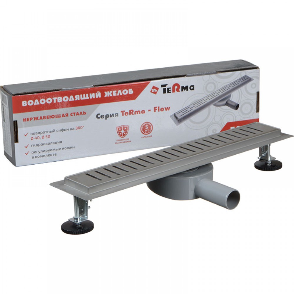 Водоотводящий желоб из нерж. стали Грейд с решеткой Terma Flow-L 70*800мм, сифон на 360град 34108.