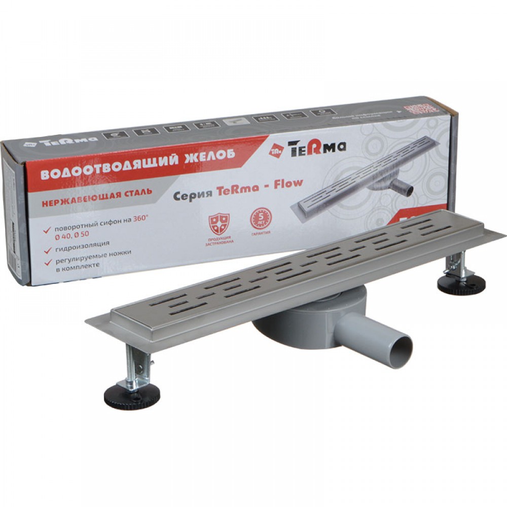 Водоотводящий желоб из нерж. стали Лайн с решеткой Terma Flow-L 70*800мм, сифон на 360град