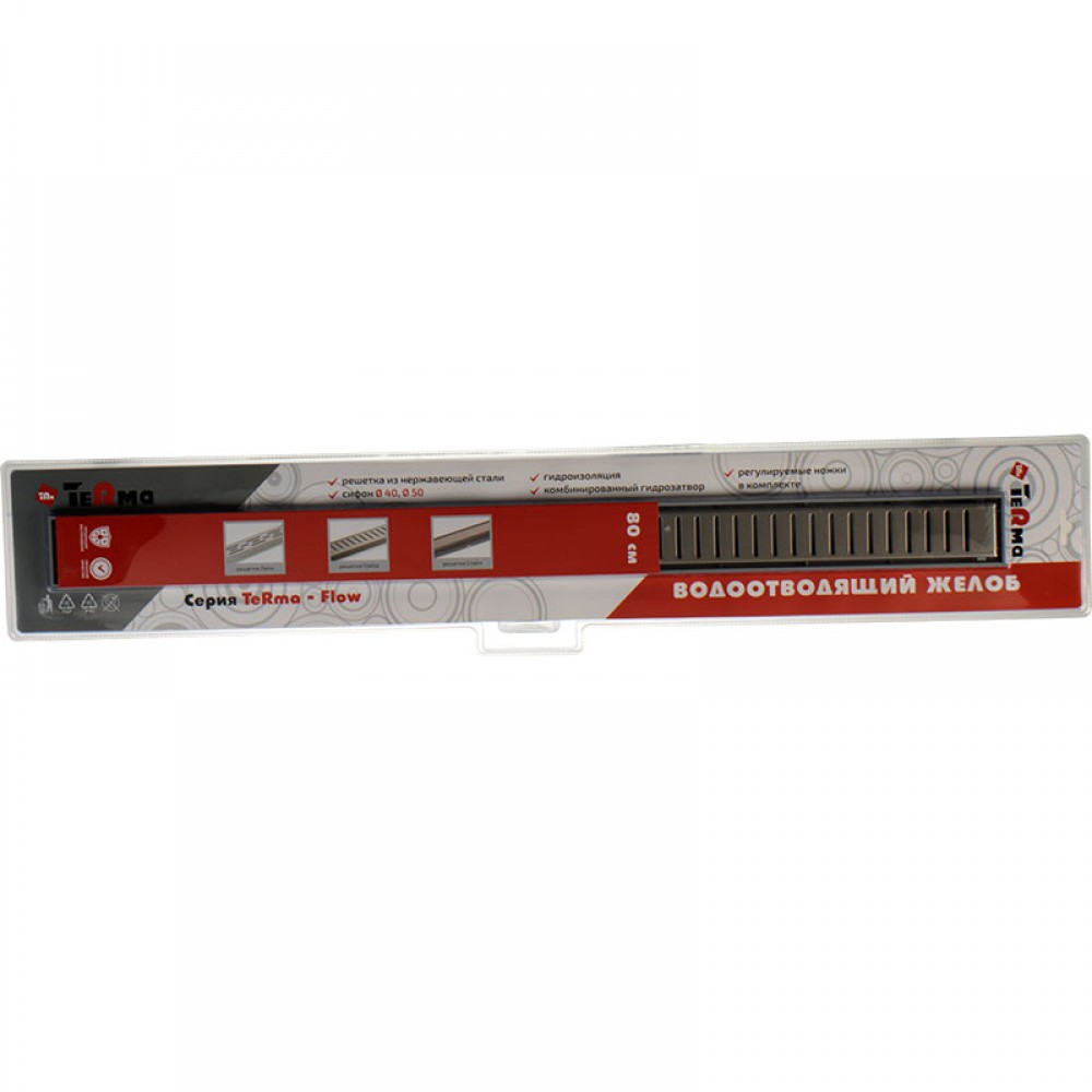 Водоотводящий желоб TeRma Flow 60*800мм, решетка Грейд, применяется для построения безбарьерных душевых и монтируется в стяжку.