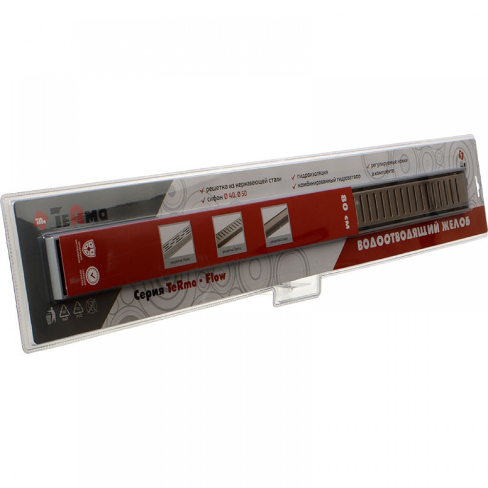 Водоотводящий желоб пластик Грейд с решеткой Terma Flow-L 60*800мм, комбин.гидрозатвор