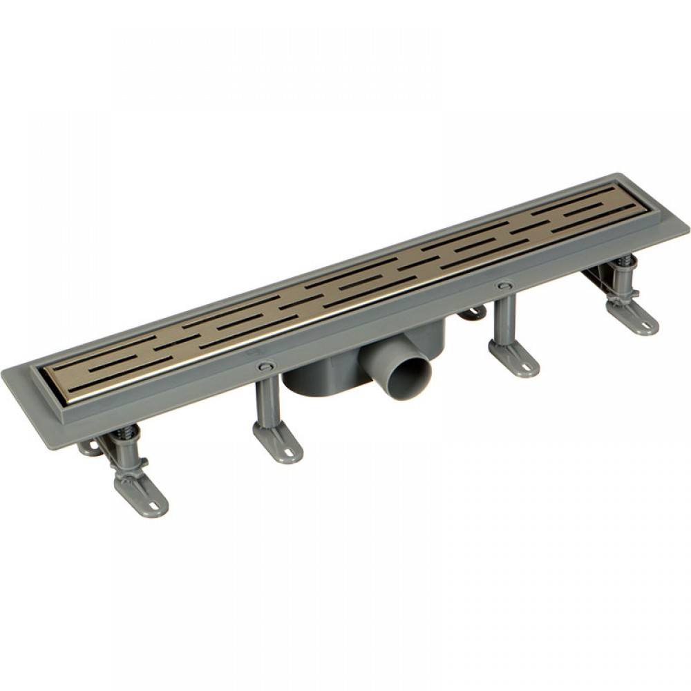 Материал решетки - высококачественная нержавеющая сталь, длина дренажного канала 600 мм, регулировка по высоте 75-110 мм, скорость стока воды 30 литров в минуту.