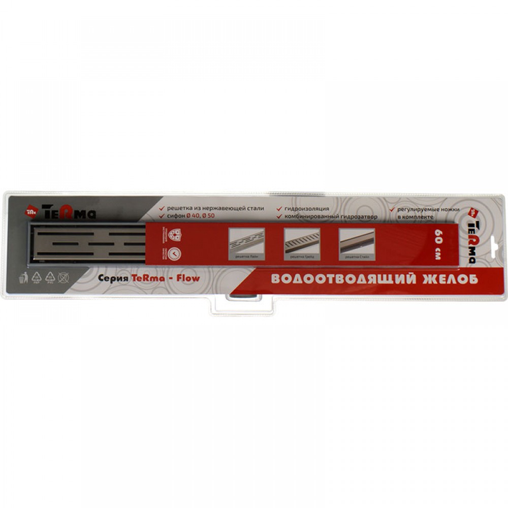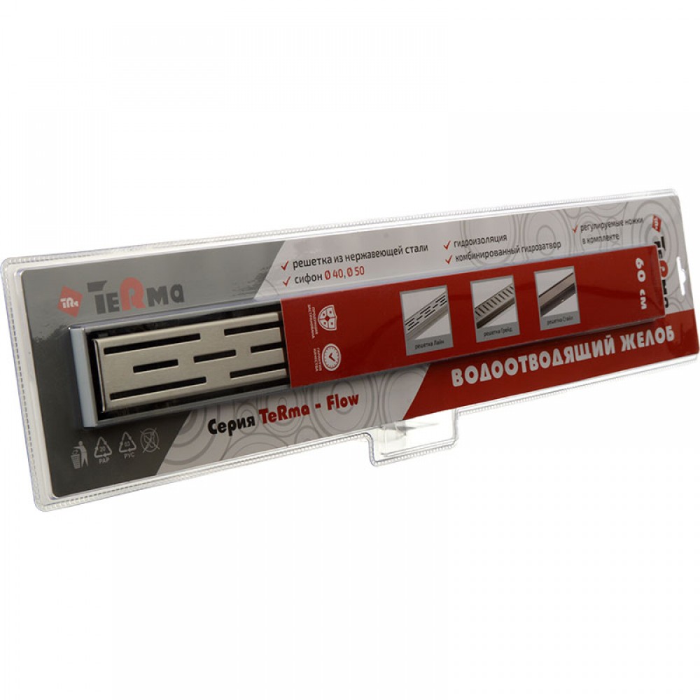 Водоотводящий желоб пластик Лайн с решеткой Terma Flow-L 60*600мм, комбин.гидрозатвор