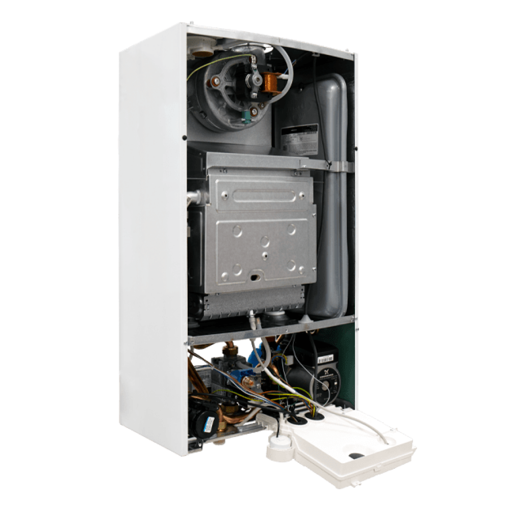 - ✓ Надежная монотермическая система: Котел оборудован медным теплообменником (CUPRUM) для отопления и отдельным пластинчатым теплообменником из нержавеющей стали для ГВС. Это обеспечивает стабильную температуру горячей воды и увеличивает срок службы котла.