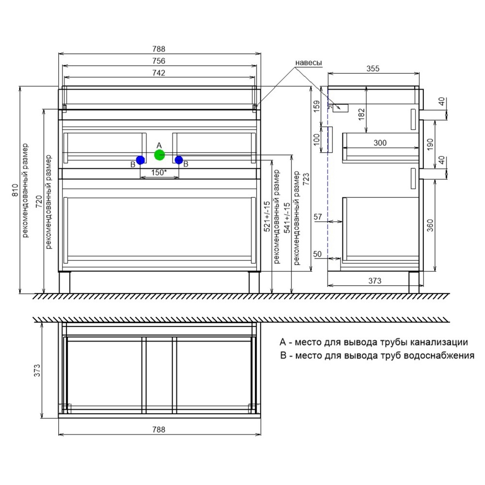 - ✓ Высота тумбы 823мм, глубина - 374мм. (50 размер 343мм ). Ширина 800 мм.