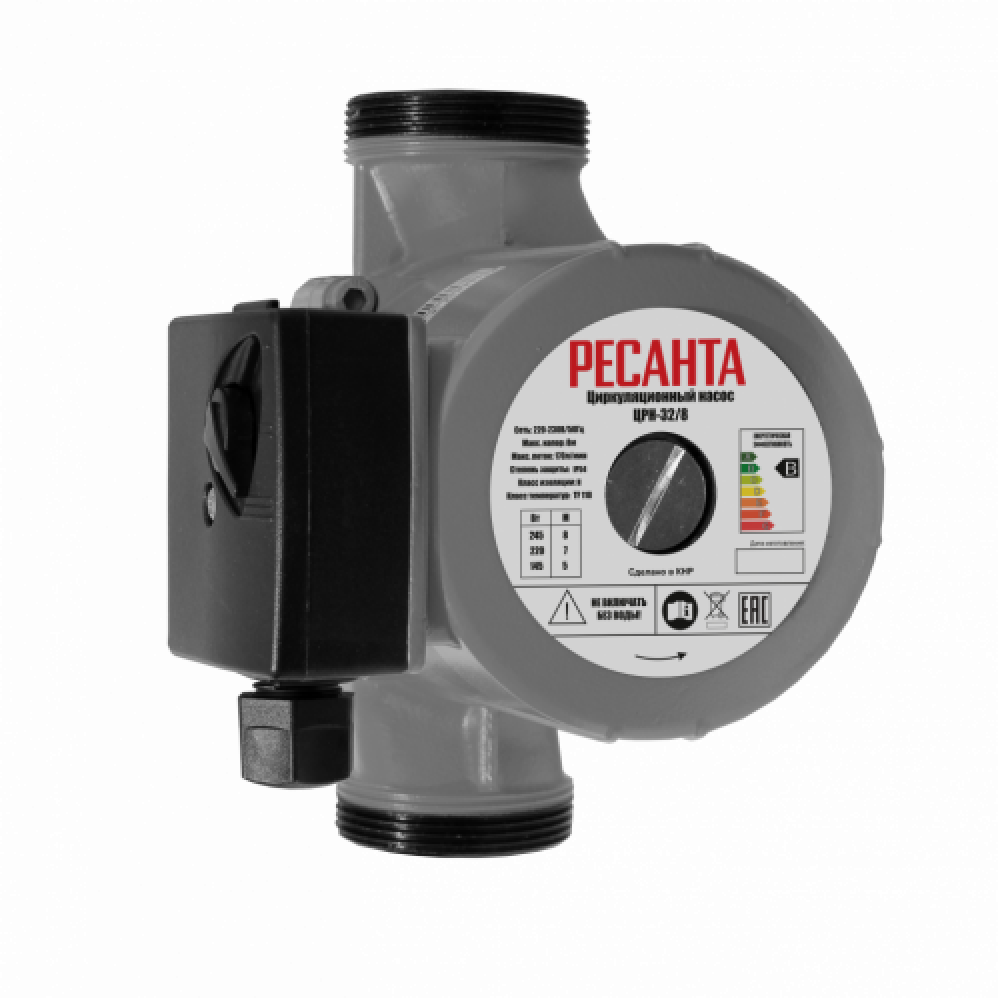 Циркуляционный насос Ресанта ЦРН-32/8 с трехступенчатой мощностью 145/220/245 Вт, максимальным напором до 8 м и потоком до 170 л/мин предназначен для циркуляции теплоносителя в замкнутых системах отопления.