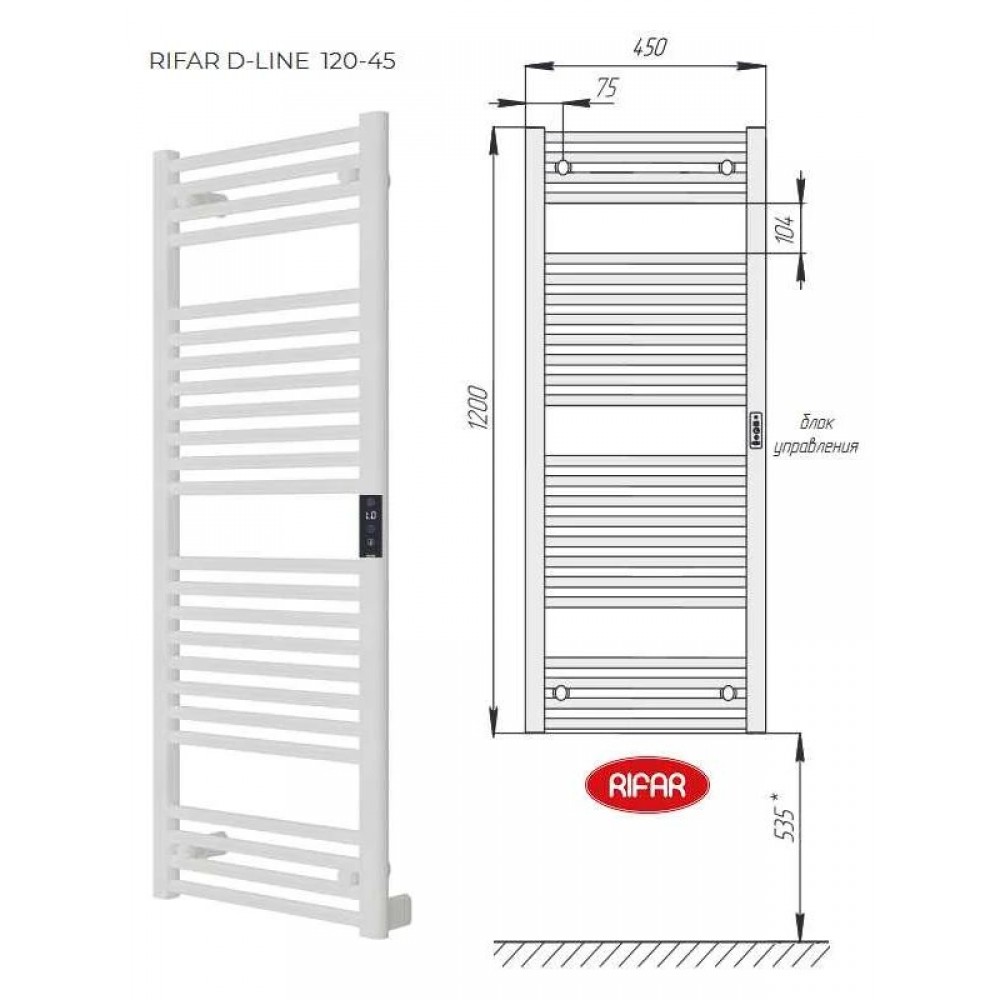 Полотенцесушитель электрический "RIFAR D-LINE" DL-120-45-W, цвет "Белый", мощность 250 Вт