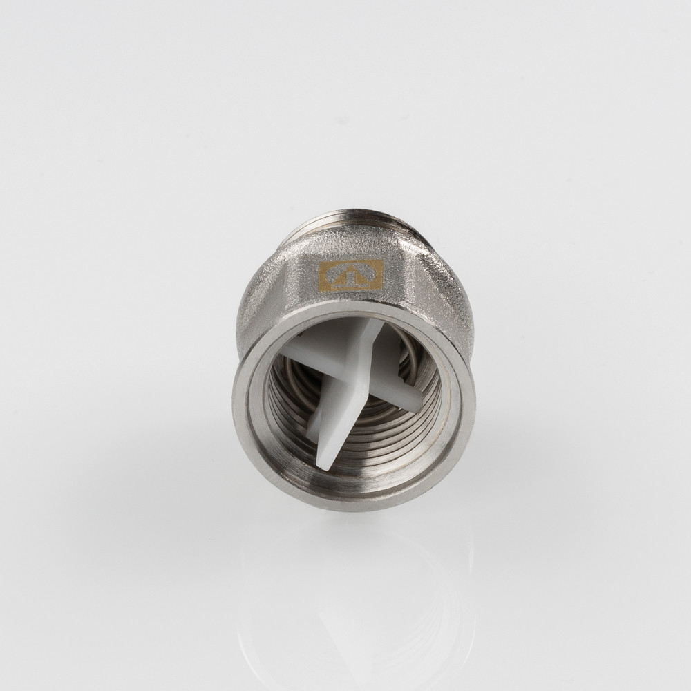Отсекающий клапан VT.539.NO.04 обеспечивает возможность установки и демонтажа автоматического воздухоотводчика VT 502 без опорожнения системы. Состоит из никелированного латунного корпуса, пластикового золотника и резинового уплотняющего кольца. В верхнем положении золотник удерживается пружиной из нержавеющей стали. Клапан устанавливается на трубопровод перед воздухоотводчиком.