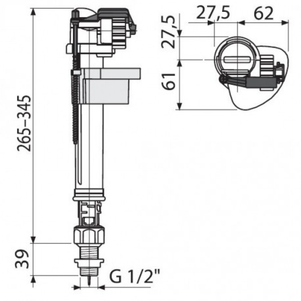 Впускной механизм нижний (с регулир.высоты) 1/2" A17 ALСAPLAST Alcadrain