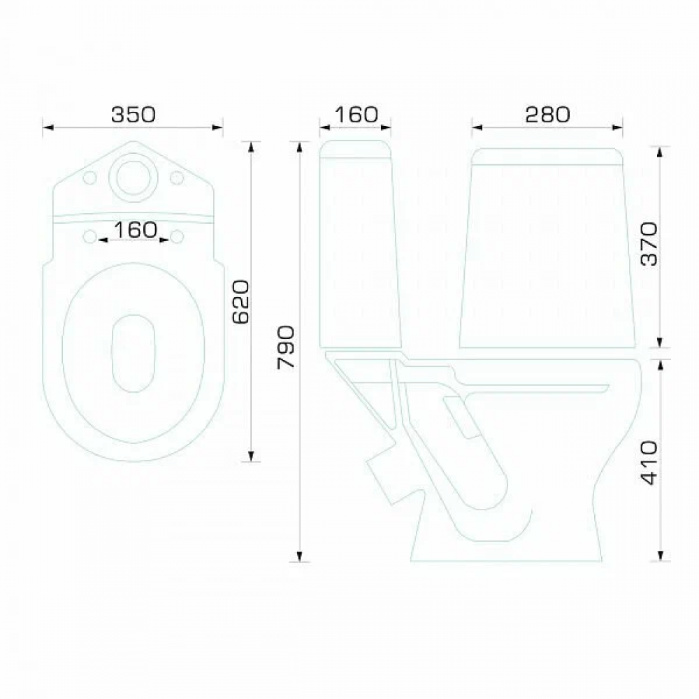 Унитаз-компакт Home De Lux W102, косой выпуск, сидением полипропилен, 2-х уровневая арматура 21940.