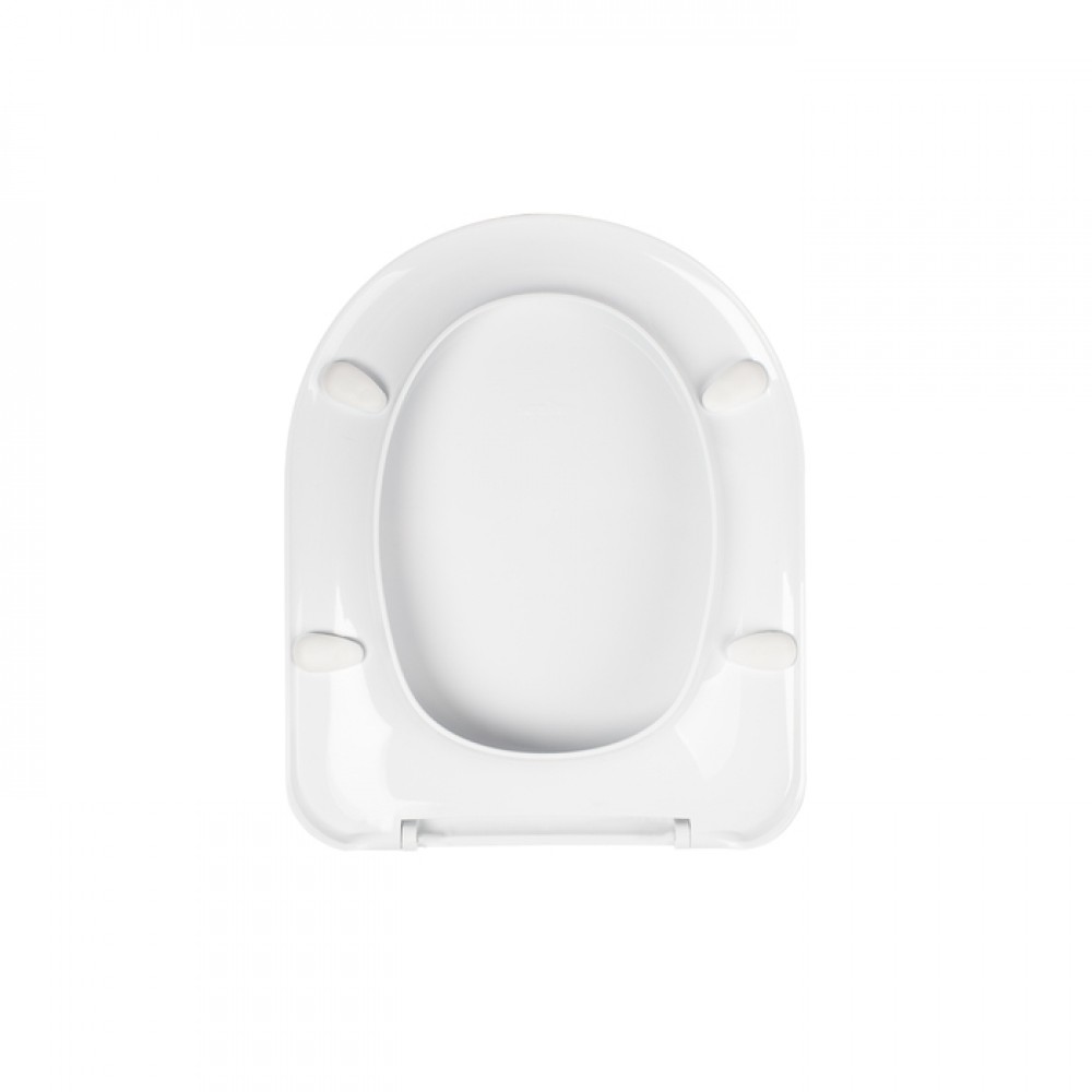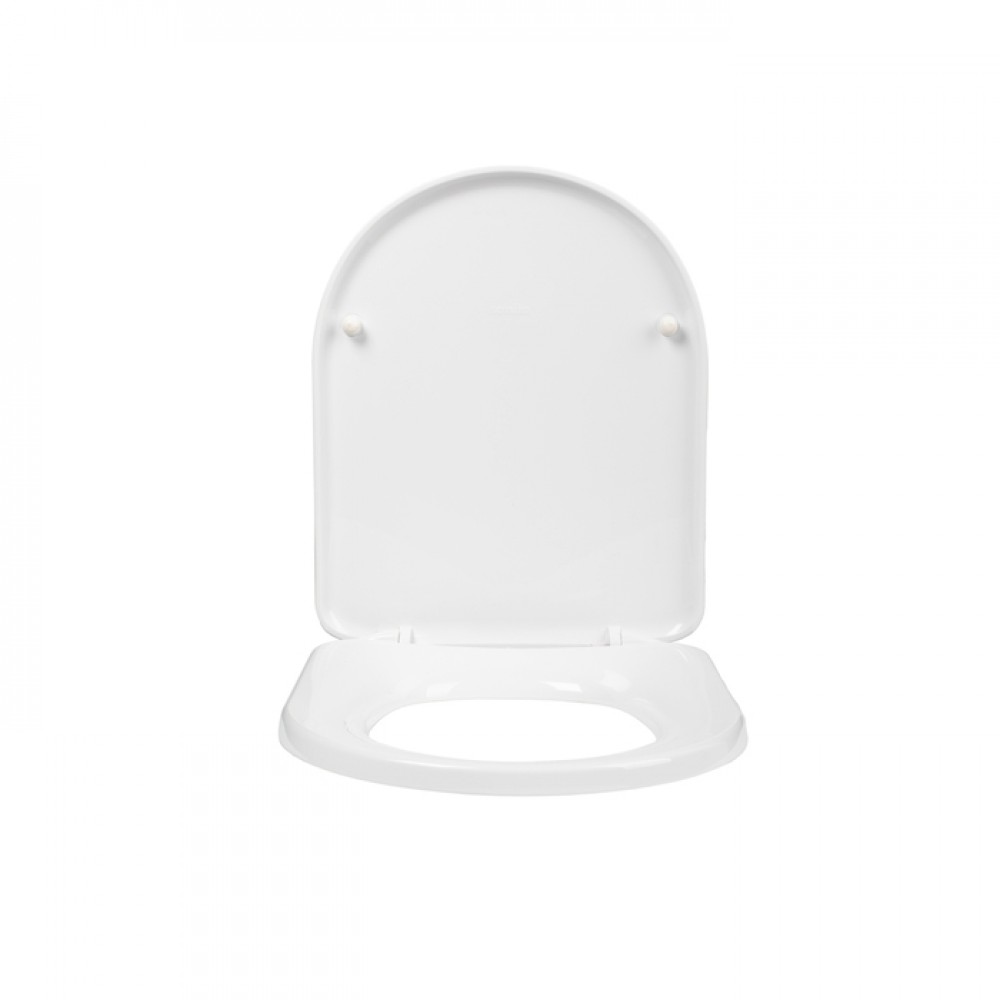 Пластиковое сиденье для унитаза белого цвета классической округлой формы.