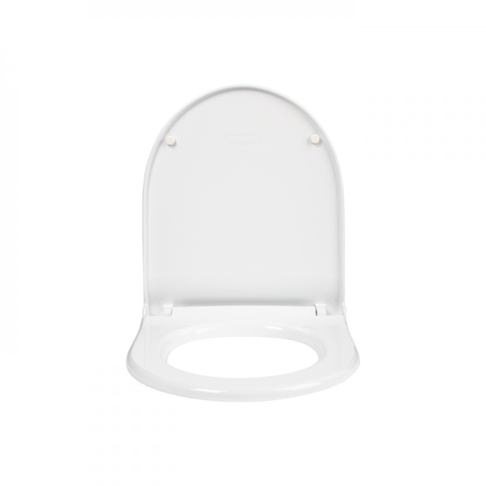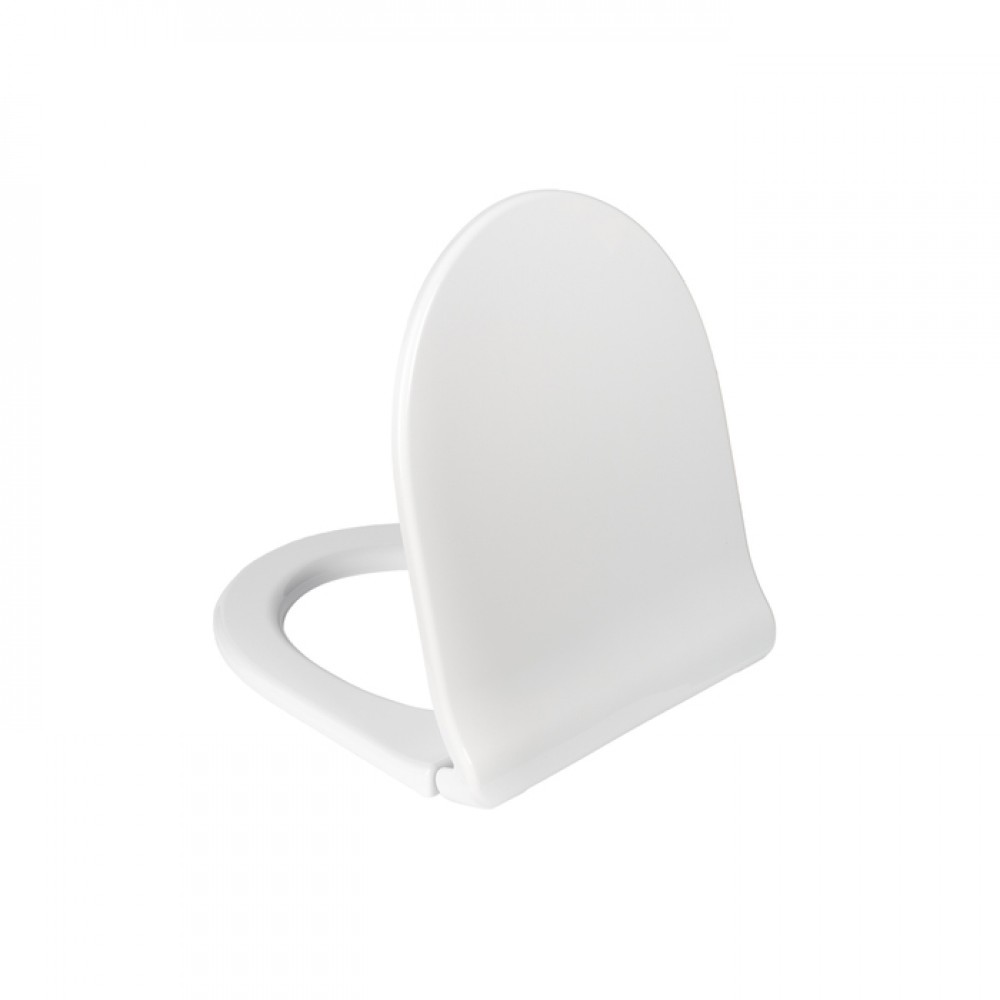 Пластиковое сиденье для унитаза белого цвета классической округлой формы. Сиденье изготовлено из полипропилена – он обладает высокой износостойкостью, устойчивостью к агрессивным химическим веществам, экологичен и безопасен для здоровья.