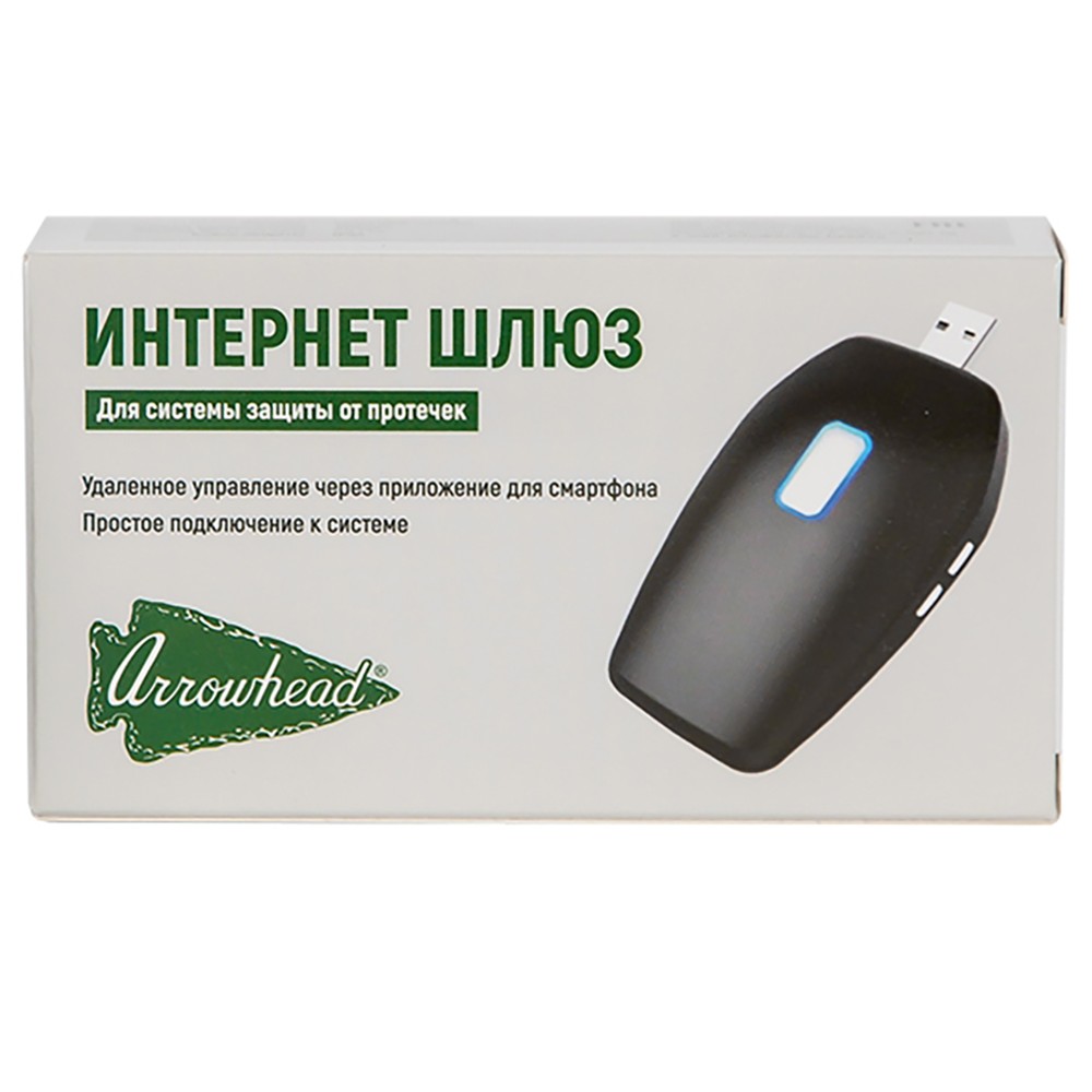 Интернет-шлюз Arrowhead (514002) — это центральный элемент беспроводной системы защиты от протечек воды и удалённого управления отоплением. Он обеспечивает соединение между всеми устройствами Arrowhead (датчиками протечки, сервоприводами, термостатами и т.д.) и мобильным приложением пользователя через интернет. Шлюз подключается к домашнему Wi-Fi (2,4 ГГц) и передаёт команды, полученные от приложения, а также оперативно отправляет уведомления при срабатывании датчиков.