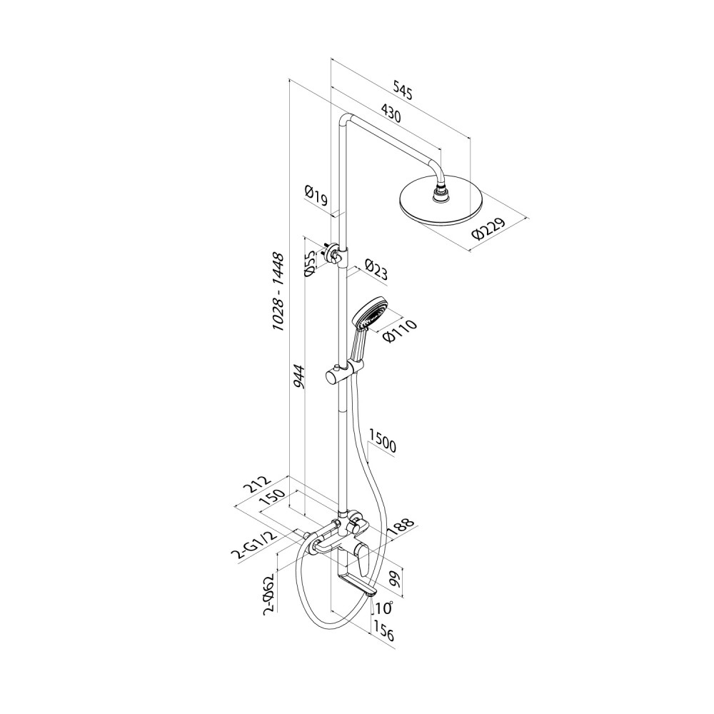 Душевая система с тропическим душем и изливом, Iddis Zodiac X