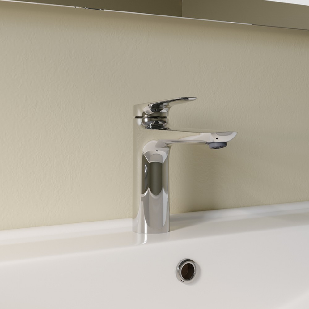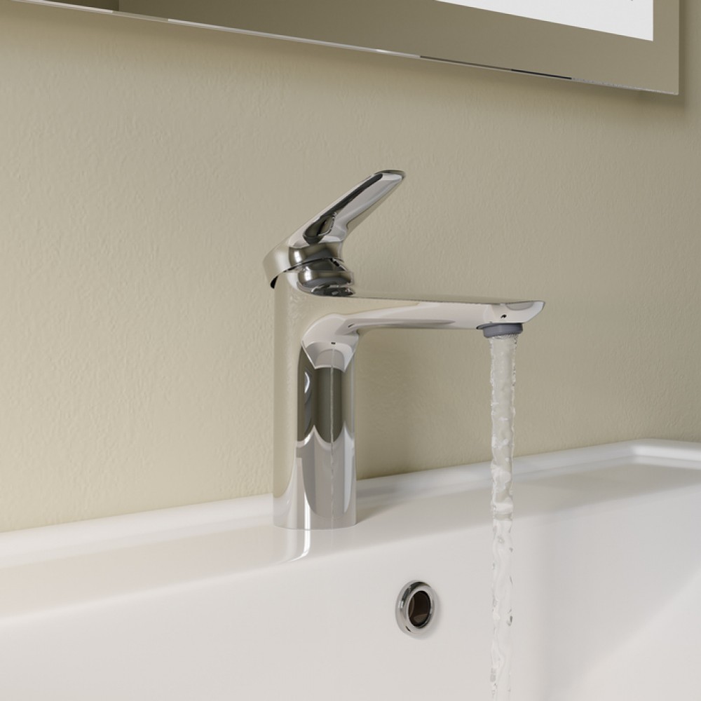 - ✓ Дизайн соответствует основным последним трендам: тонкая ручка смесителя делает его элегантным, а плавный переход линий из ручки в корпус формирует единое целое.