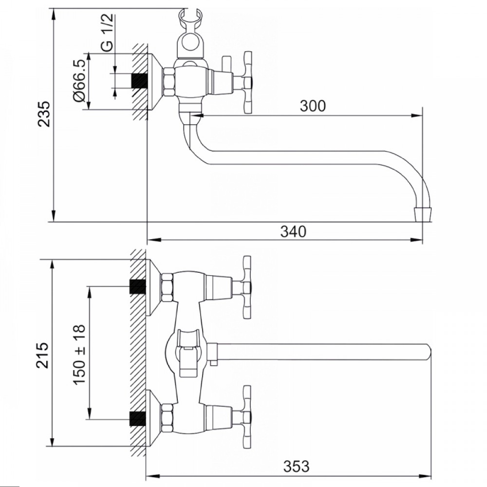 • ✓  Расстояние по центрам труб: 150 мм
