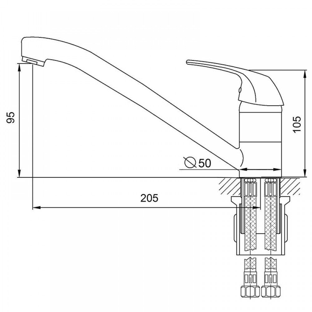 Смеситель кухня MELODIA Jive картридж д.35мм излив 25см