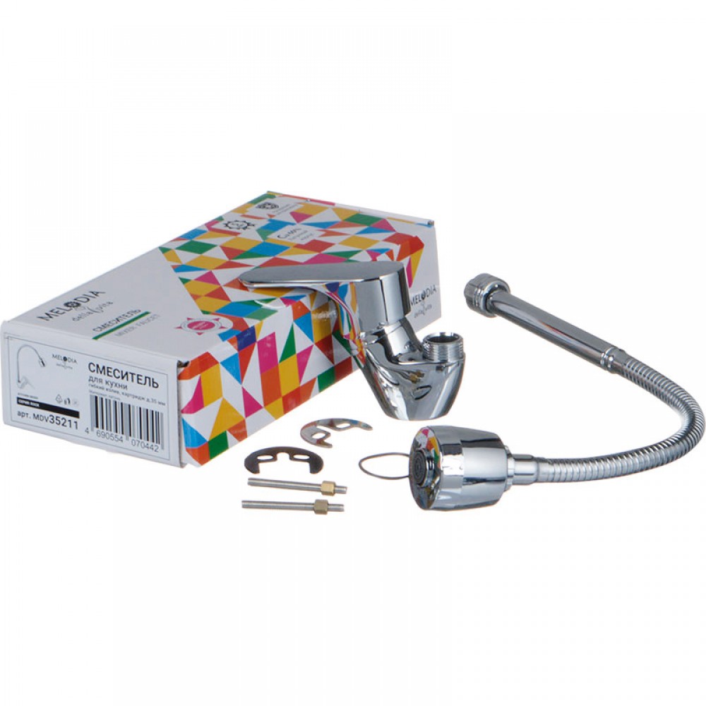 Полное наименование: Смеситель кухня MELODIA Rock картридж 35мм гибкий излив хром