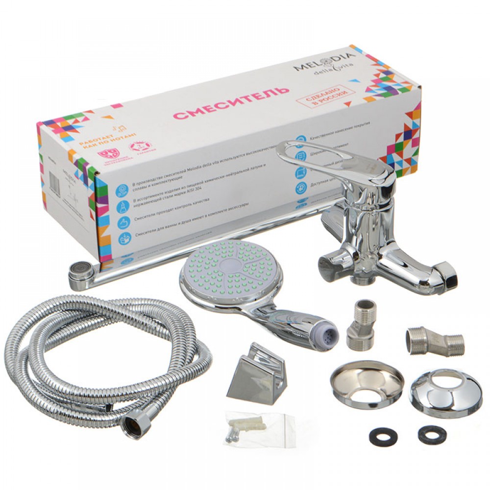 Полное наименование: Смеситель ванна MELODIA Classica картридж д.40мм излив 350мм с акс. лейка 1ф.100мм круглая
