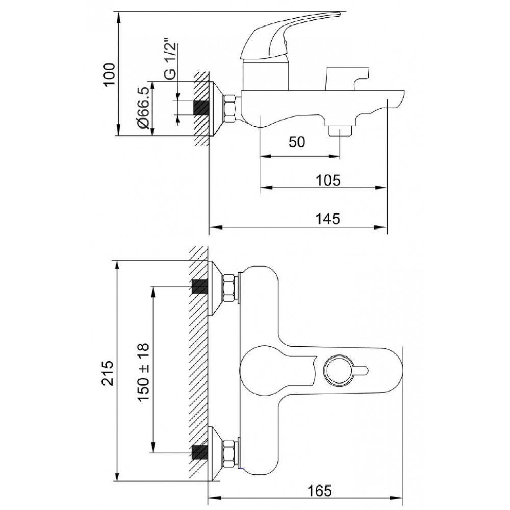 • ✓  Межцентровое расстояние: 150 мм