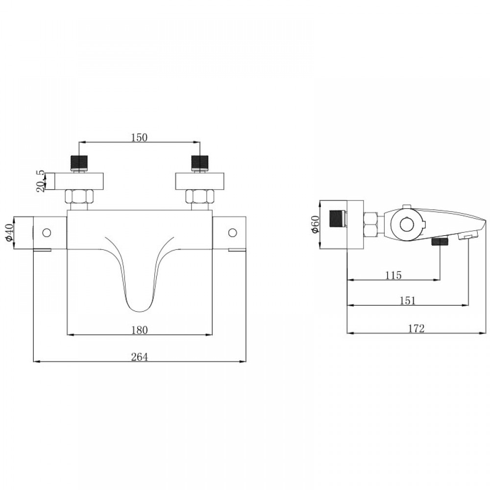 Кран снабжен двумя эргономичными рукоятками: одна отвечает за настройку комфортной температуры, другая контролирует напор потока и переключает воду на душ. Глянцевое хромированное покрытие гарантирует длительное сохранение привлекательного внешнего вида оборудования.
