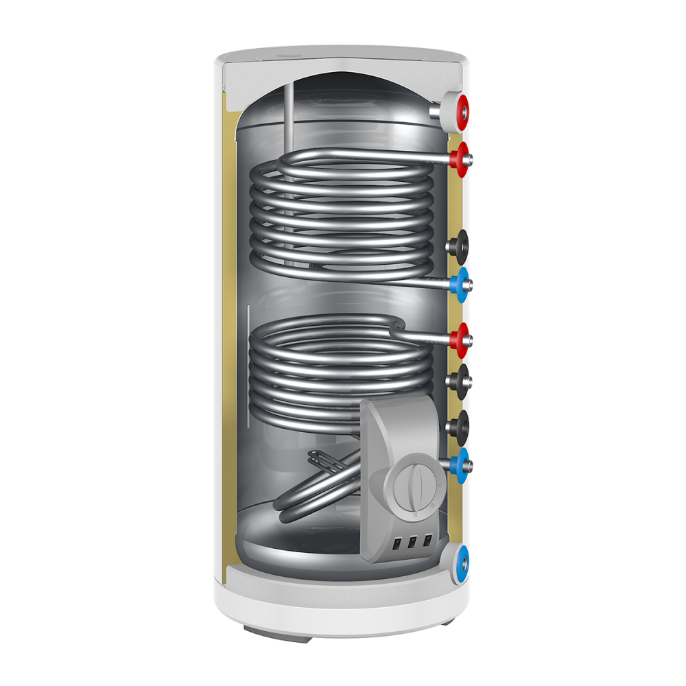 Использование двух теплообменников существенно расширяет возможности использования водонагревателя - можно интегрировать его в две системы нагрева, например, отопления от котла и солнечный коллектор, используя их одновременно для быстрого нагрева воды, или попеременно, нагревая воду за счет котла отопления летом и солнечной батареи зимой. Кроме того, возможно подключить оба контура к одной системе и дважды использовать ее тепло для более быстрого нагрева.