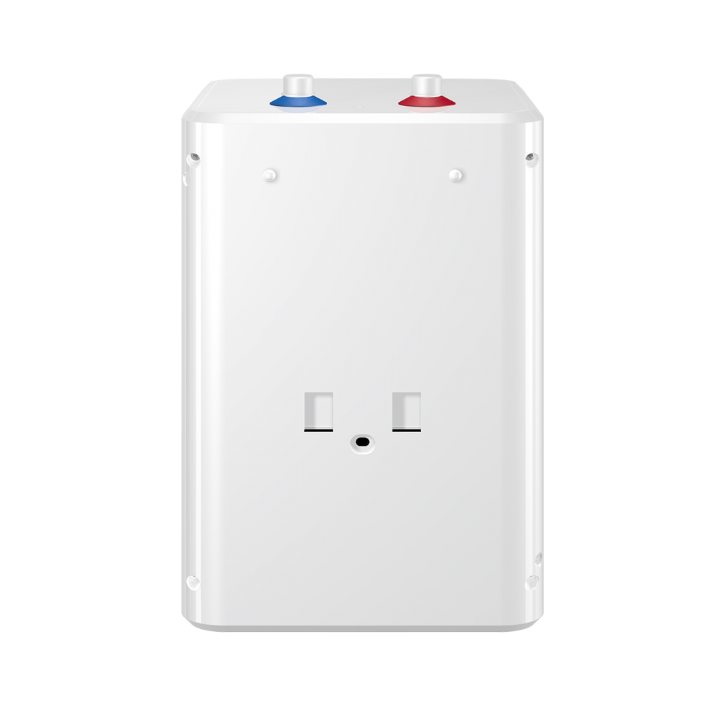 - ✓ Уникальный дизайн и удобная форма. Внешне серия Day смотрится необычно и интересно. Классический белый водонагреватель с водной гладью на фронтальной стороне дополнит и разнообразит интерьер. Квадратная форма бака делает прибор компактным и удобным для размещения на кухне, в ванной, любых нишах или шкафах. Глубина бака варьируется от 248 до 315 мм в зависимости от литража.
