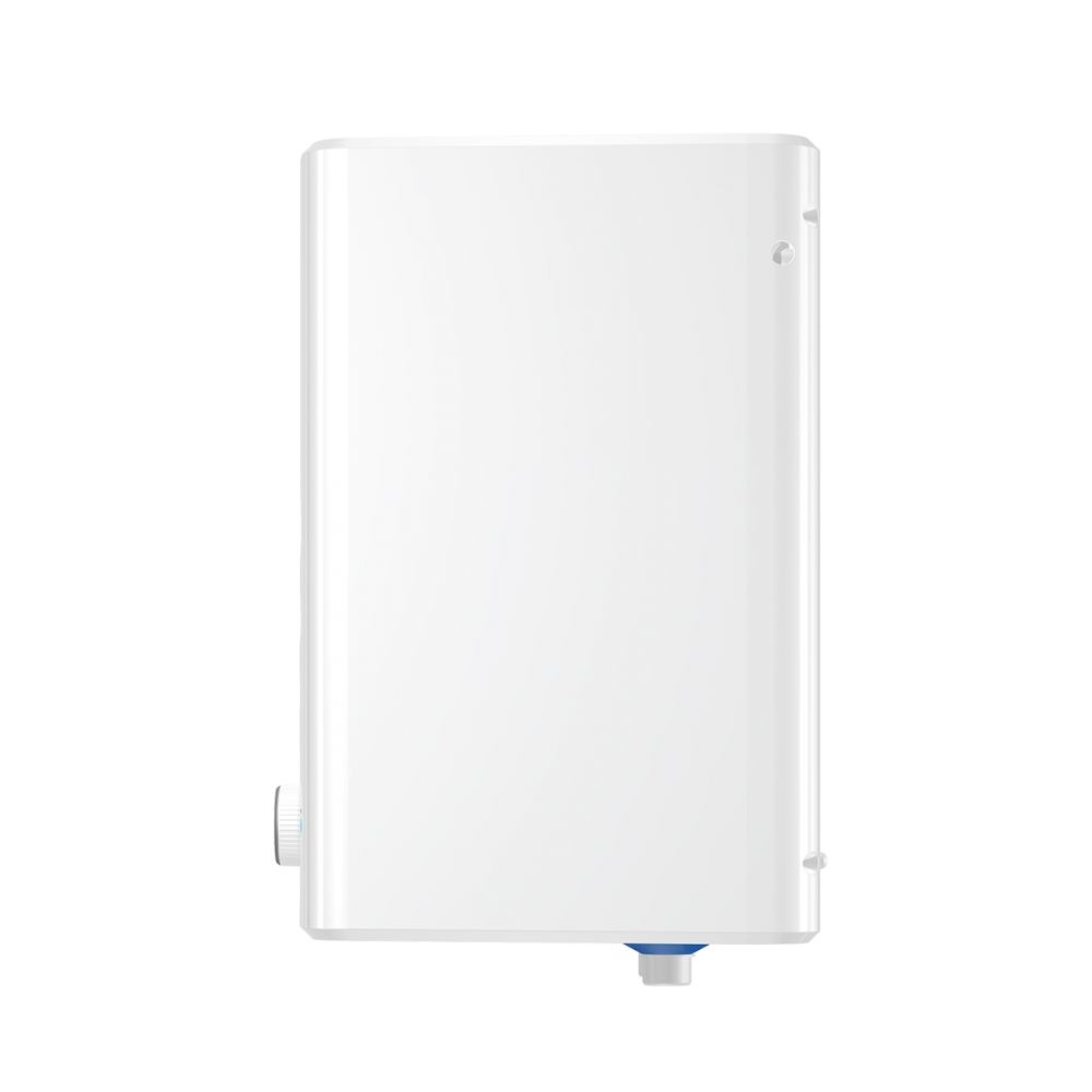 - ✓ Уникальный дизайн и удобная форма. Внешне серия Day смотрится необычно и интересно. Классический белый водонагреватель с водной гладью на фронтальной стороне дополнит и разнообразит интерьер. Квадратная форма бака делает прибор компактным и удобным для размещения на кухне, в ванной, любых нишах или шкафах. Глубина бака варьируется от 248 до 315 мм в зависимости от литража.