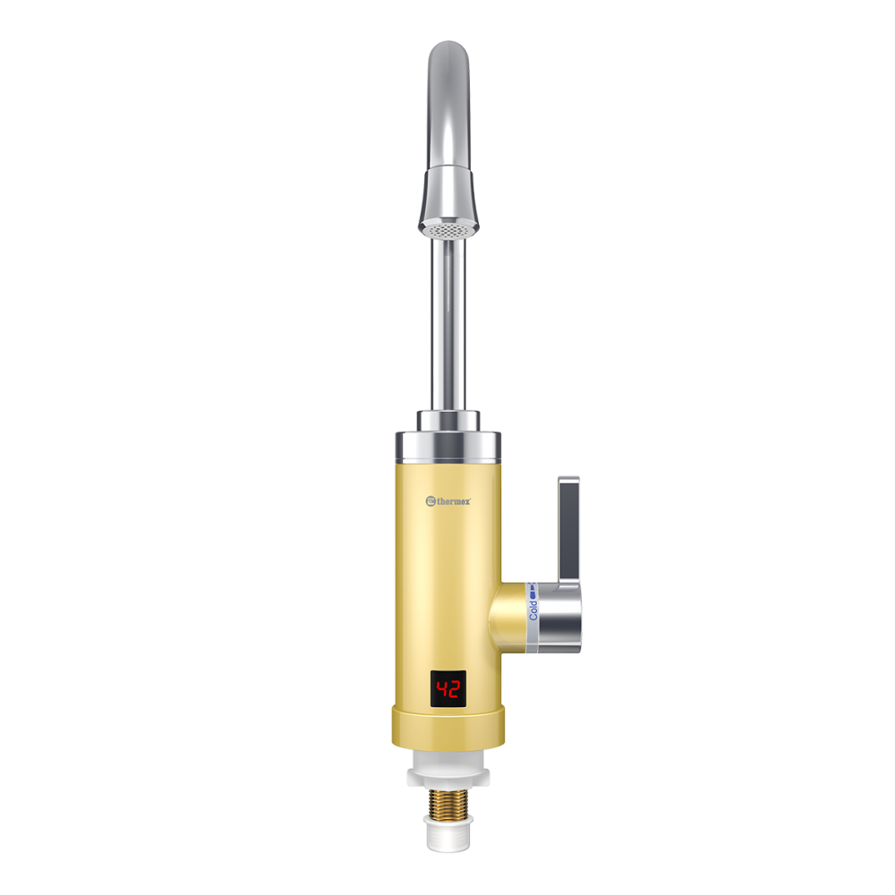 Водонагреватель проточный THERMEX Amber 3000 – это современное и компактное решение для горячего водоснабжения в квартире или на даче.Он имеет необычный дизайн, сочетающий хром и золото, что выделяет его среди других водонагревателей.
