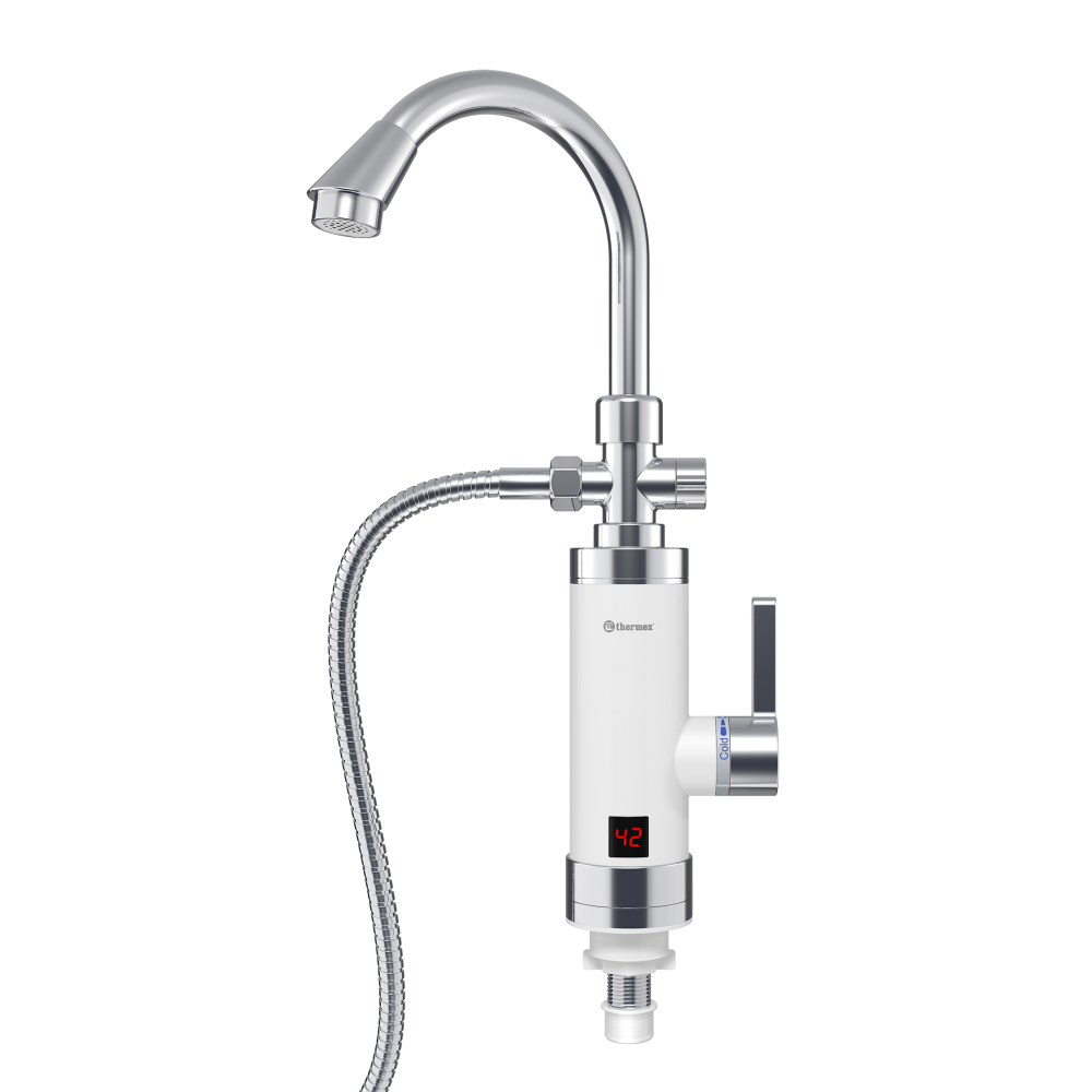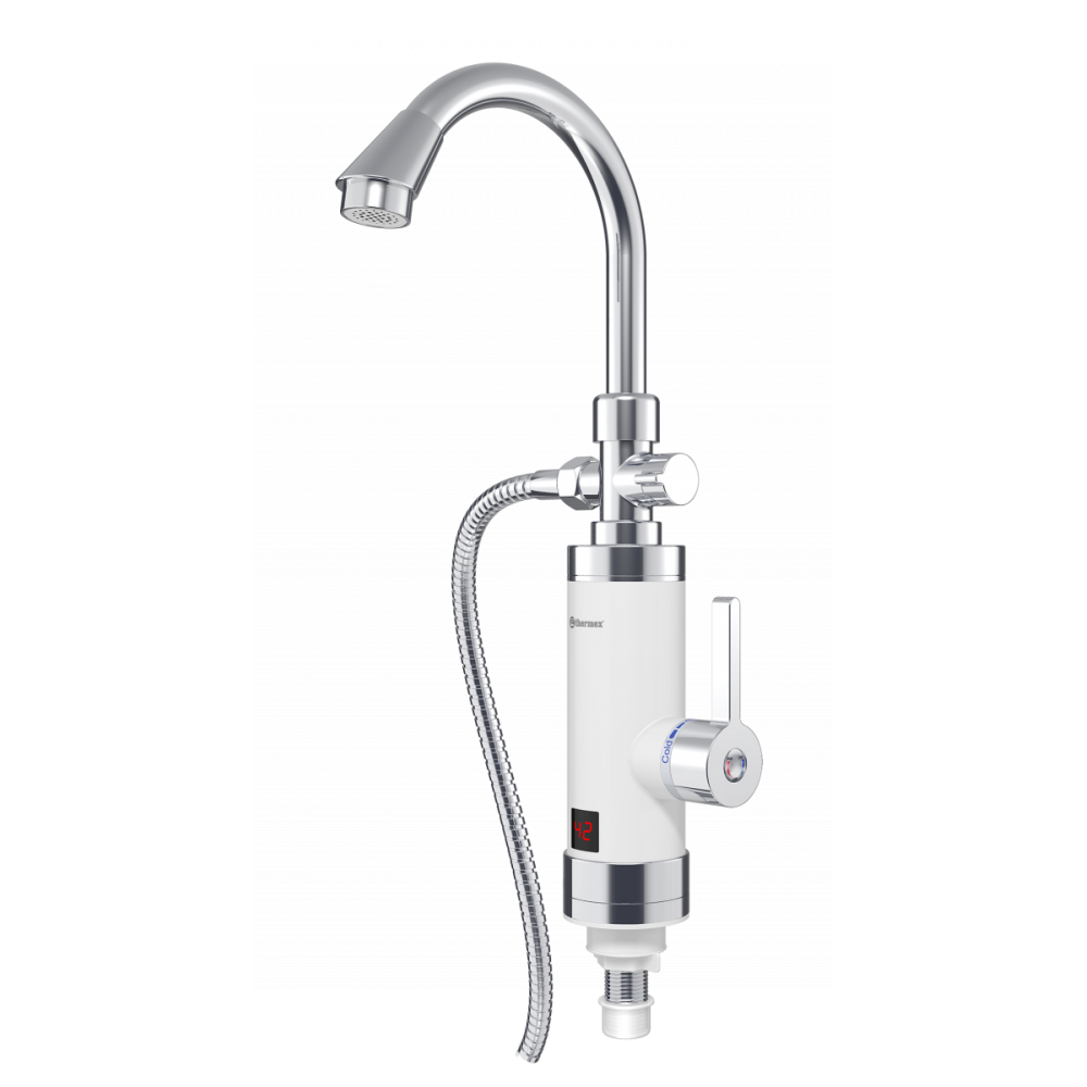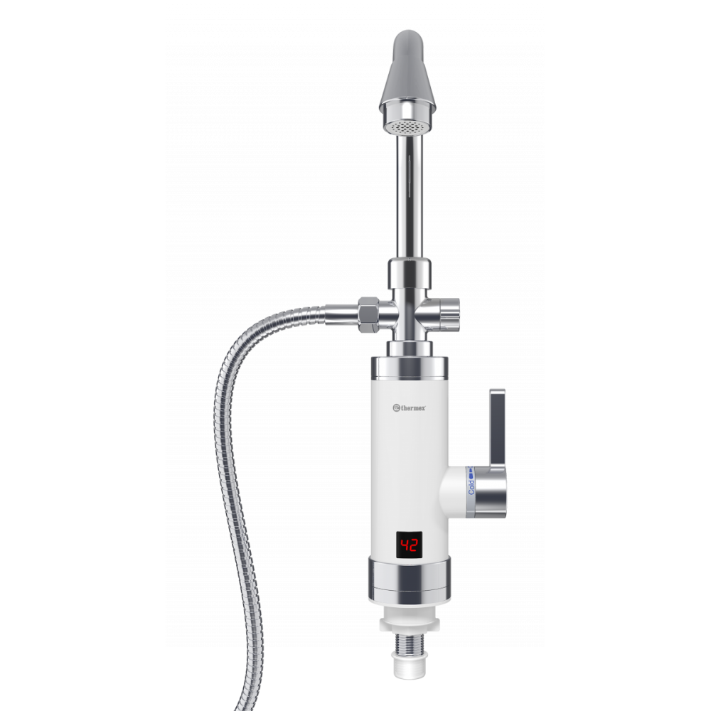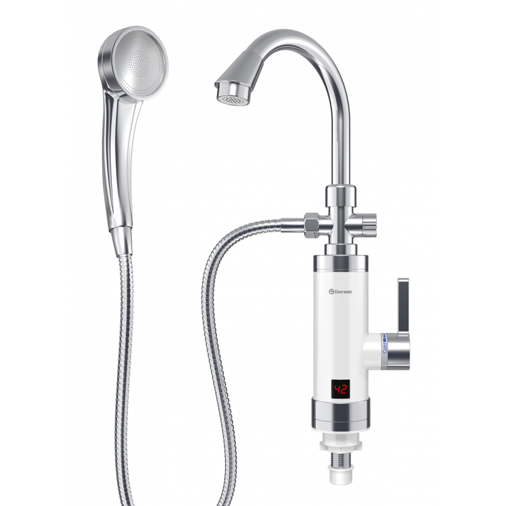 Проточный водонагреватель Thermex (Термекс) Focus 3000 является универсальным решением для обеспечения горячим водоснабжением любых жилых помещений. Подача воды производится через излив со встроенным аэратором или душевой набор, состоящий из лейки и метрового шланга. Управление производится с помощью механического регулятора температуры. ТЭН прочен и устойчив к коррозии.
