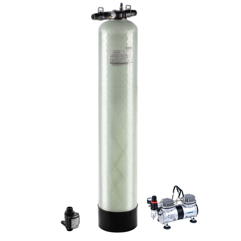 Для фильтрации окисленных соединений используются фильтры с зернистой загрузкой, обладающей большой грязеемкостью — приобретаются отдельно.